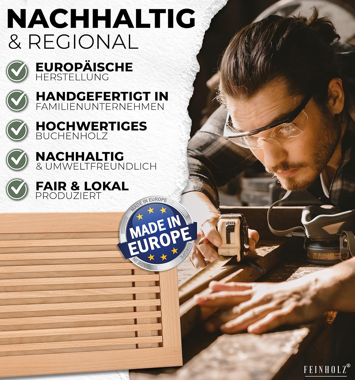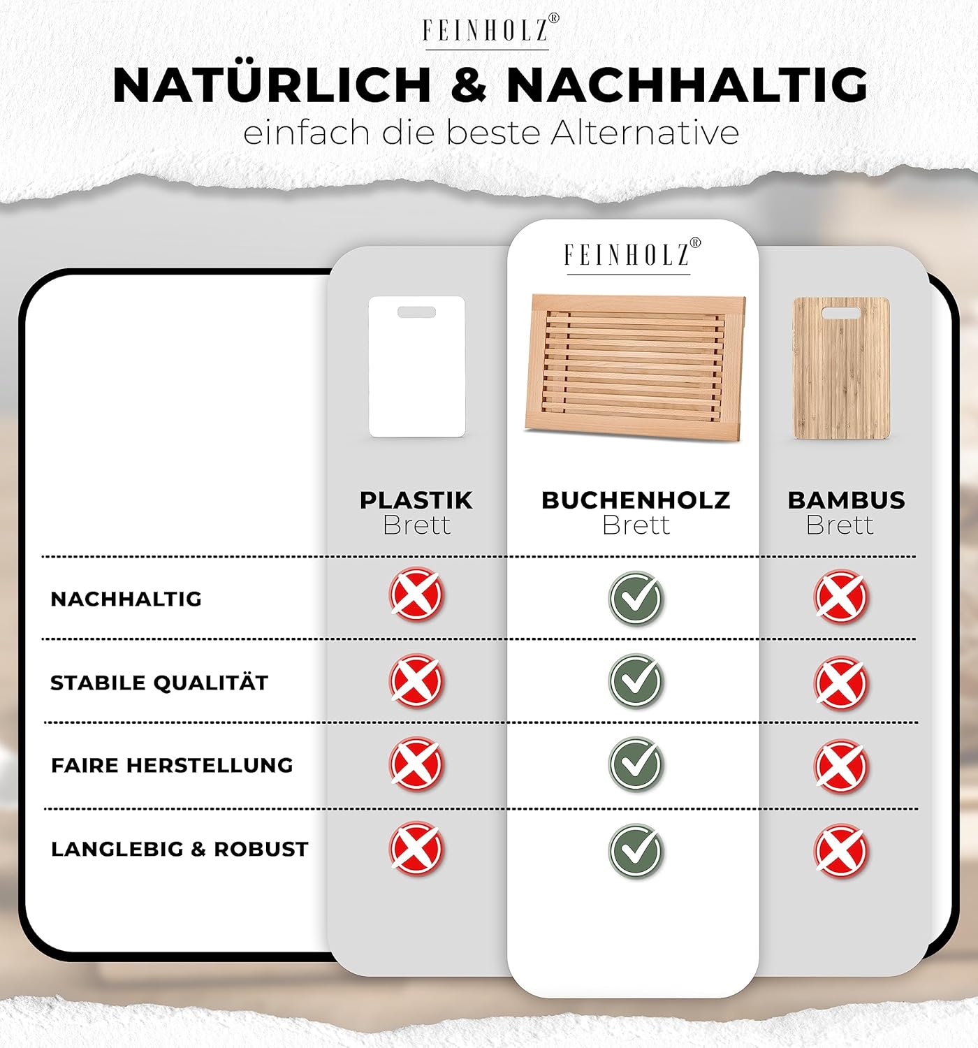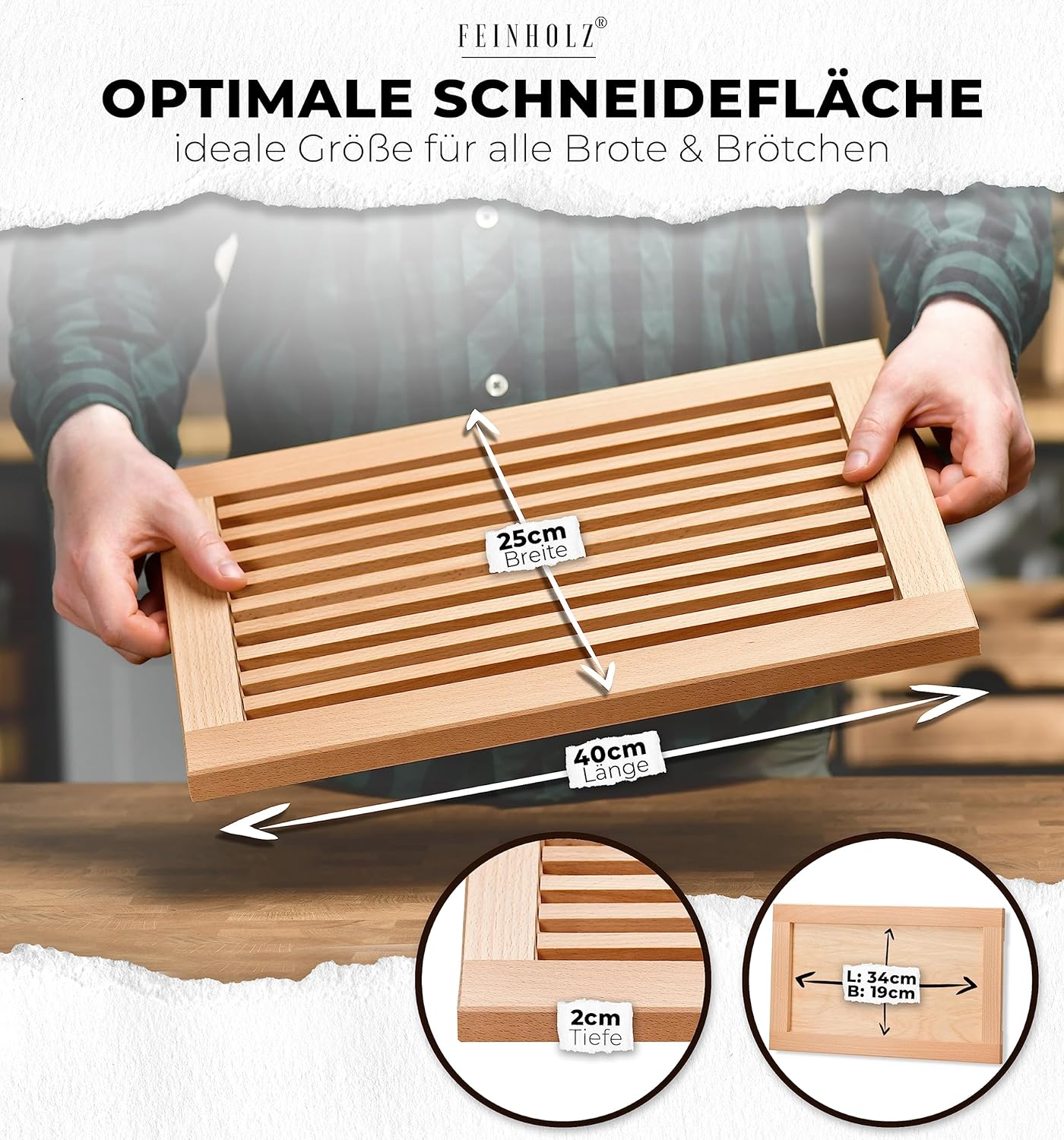 Mit einer Größe von etwa 40 × 25 cm bietet das Brett ausreichend Platz für verschiedene Brotsorten, Baguettes oder Brötchen. Das robuste Buchenholz zeichnet sich durch seine natürliche Stabilität und angenehme Haptik aus und eignet sich gut für den täglichen Einsatz in der Küche.